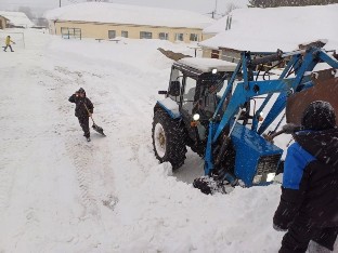 18.02.2026. Работники Староурмарской школы, несмотря на обильный снегопад, своевременно очищают дорожки к входам в здание и вокруг школы.
